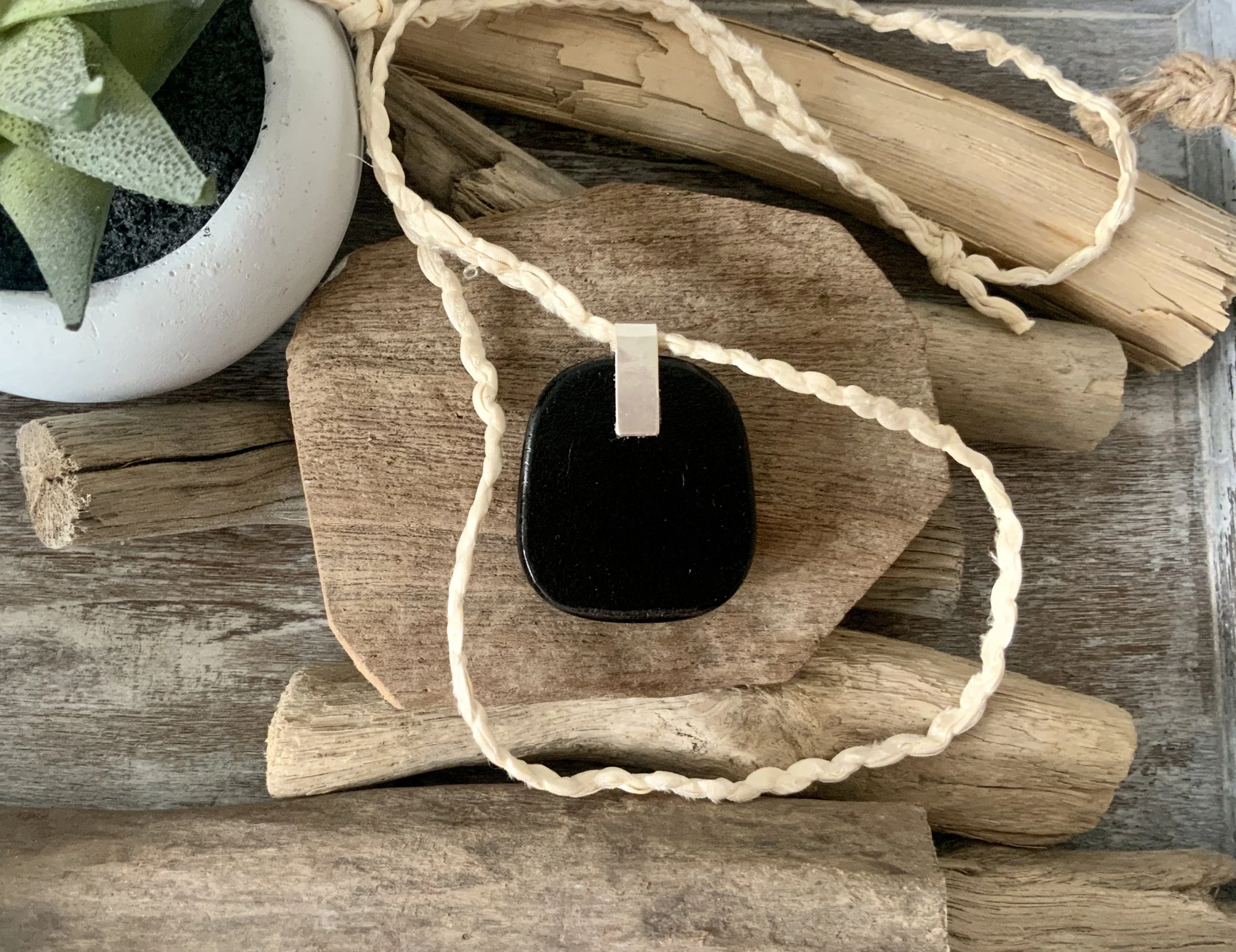 This pendant is hand-matched with a twisted silk cord necklace to complement its color and texture. It is tied so that it can slip over your head and be adjusted to the length you desire.