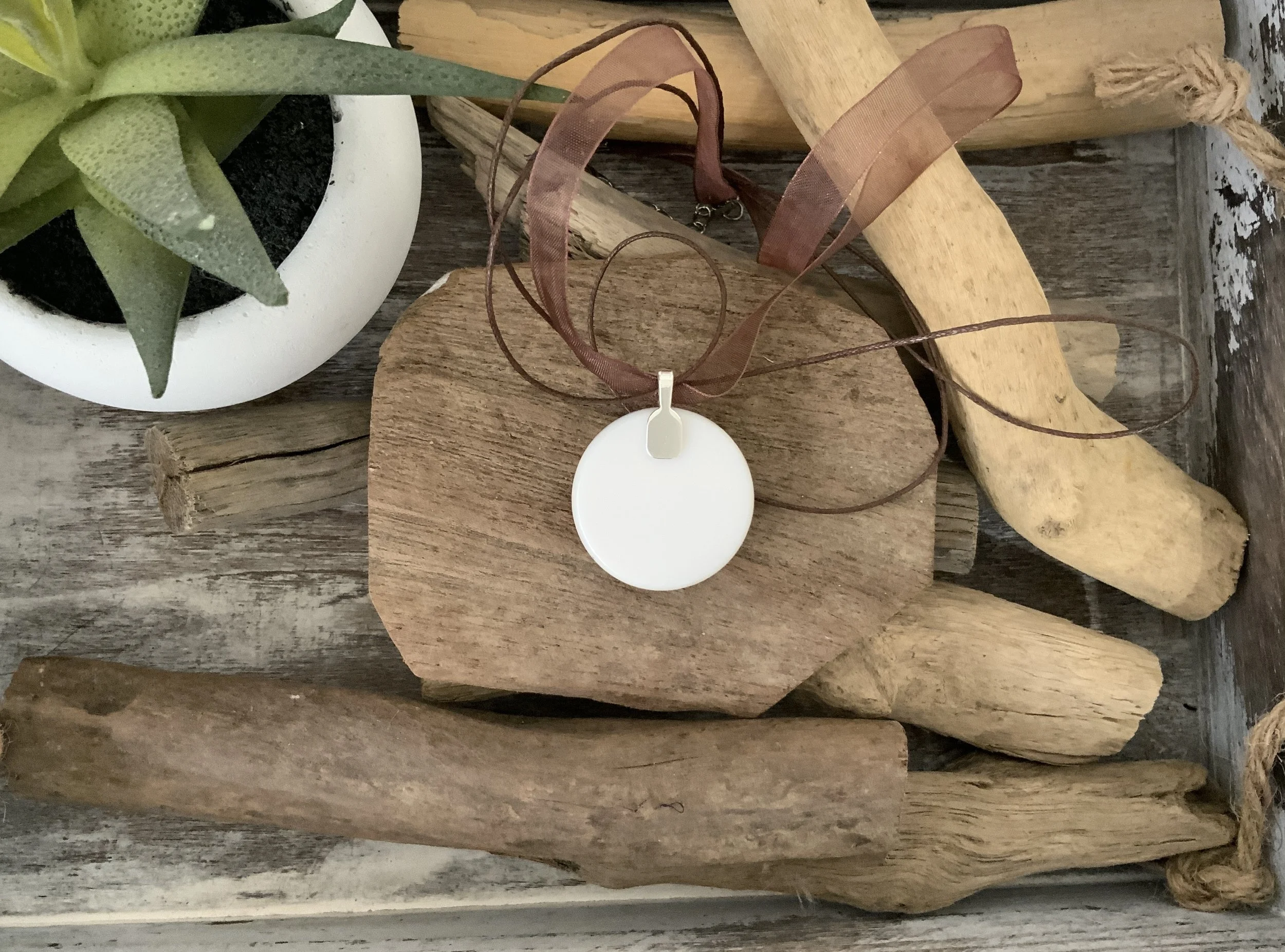 All pendants come in a paper jewelry box, cushioned with cotton sheeting. That box is then packed inside a secure shipping box, filled with recyclable crinkle cut, shredded paper to further shield the item.
